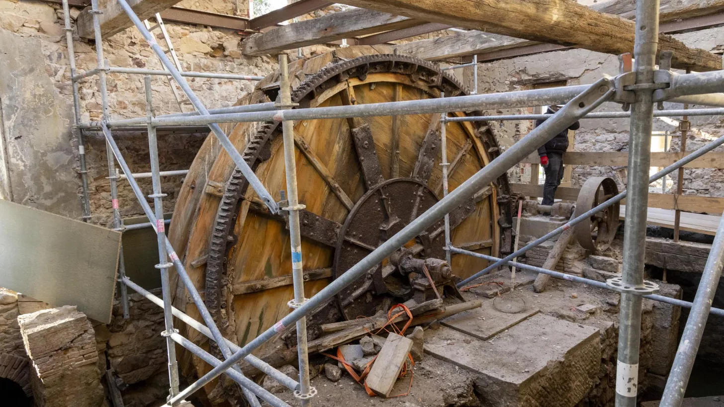 “L’un d’entre eux abrite l’un des derniers tympans d’Europe et le dernier de France, roue en bois et métal qui nécessitera une restauration sur place tant elle a été fragilisée par le temps. Explique Caterina Politi, architecte spécialisée en patrimoine.