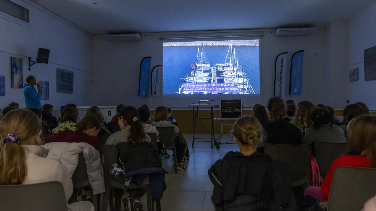 La rencontre a débuté par le visionnage de la vidéo bilan de l’épreuve, permettant aux élèves de revivre les temps forts de la course et de mieux appréhender les défis relevés en mer. S’en est suivi un temps d’échange nourri, au cours duquel les enfants ont pu poser toutes leurs questions sur le quotidien d’un skipper : le sommeil en mer, l’alimentation à bord, la gestion du stress, la fatigue ou encore la préparation mentale et physique.