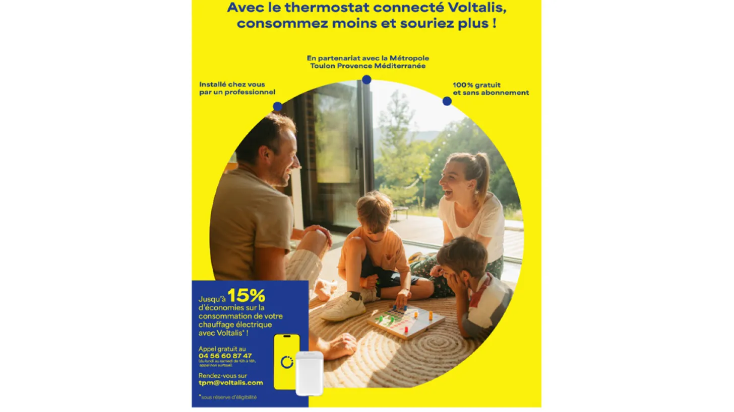 En totale adéquation avec les objectifs du service « Bien chez Soi » de TPM et de Toulon, dont les mesures visent à mieux maîtriser les consommations énergétiques, développer les énergies renouvelables et diminuer les émissions de CO2, le territoire souhaite proposer ce thermostat connecté Voltalis au plus grand nombre.