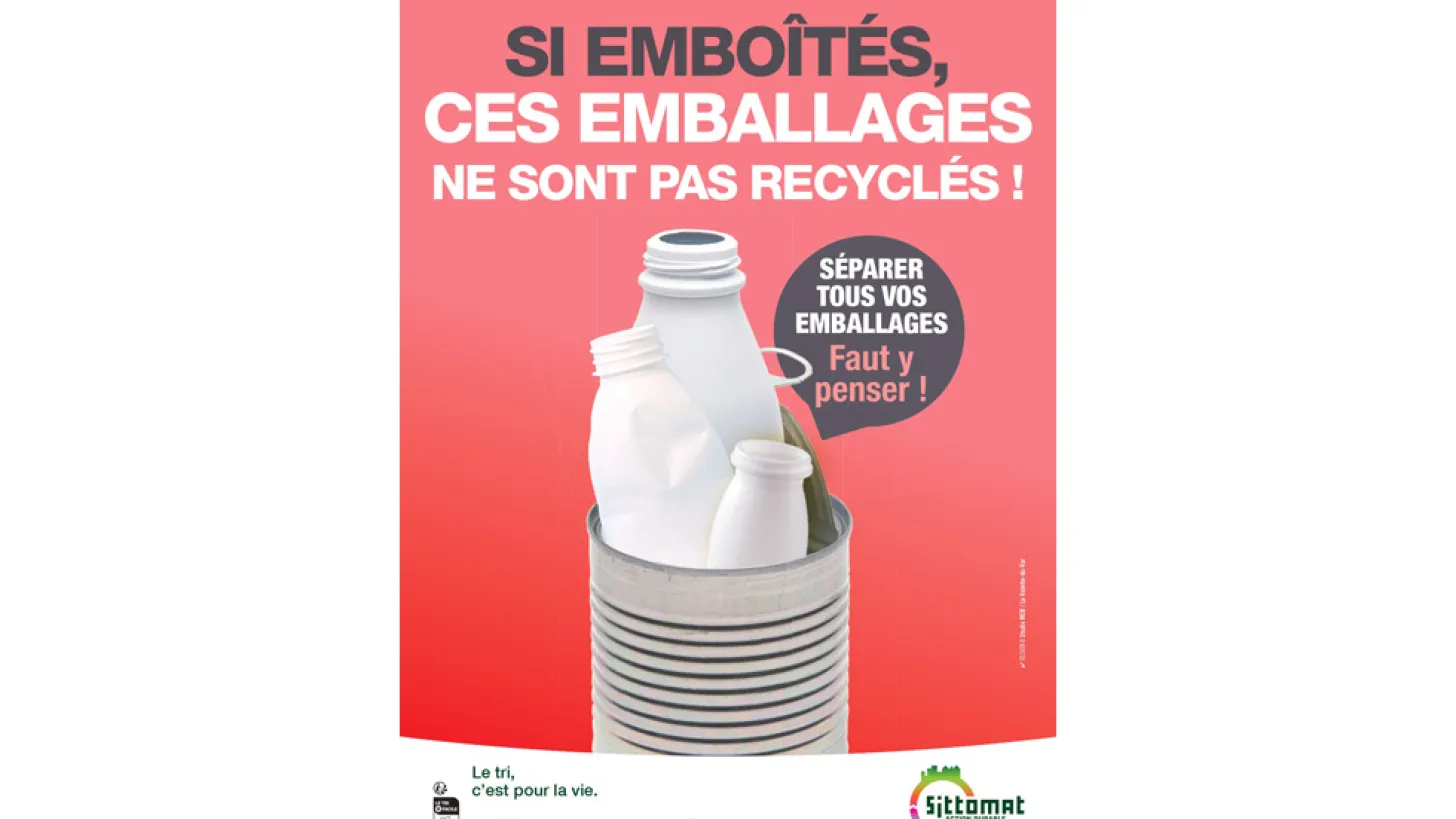 - N’emboîtez pas vos emballages, même s’ils vont dans le même bac et qu’il s’agit de la même matière ;