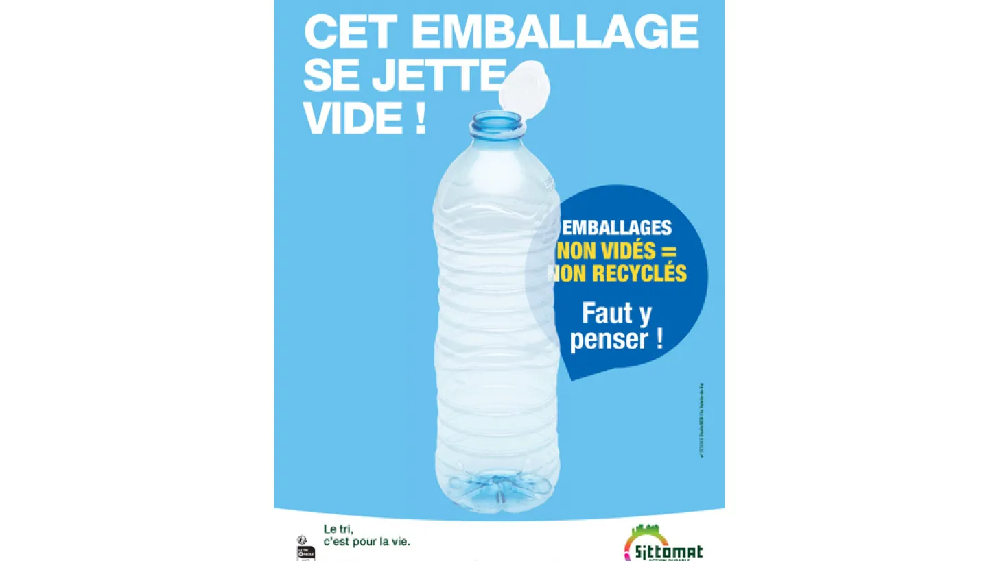 - Videz vos emballages de leur contenu avant de les jeter (bouteilles, bocaux, flacons, briques, boites de conserve…) ;
