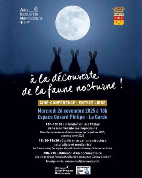 Partez à la découverte de la faune nocturne ! La Métropole TPM, en partenariat avec la Ville de La Garde, vous propose une ciné-conférence gratuite pour mieux comprendre la biodiversité qui s’anime une fois la nuit tombée.