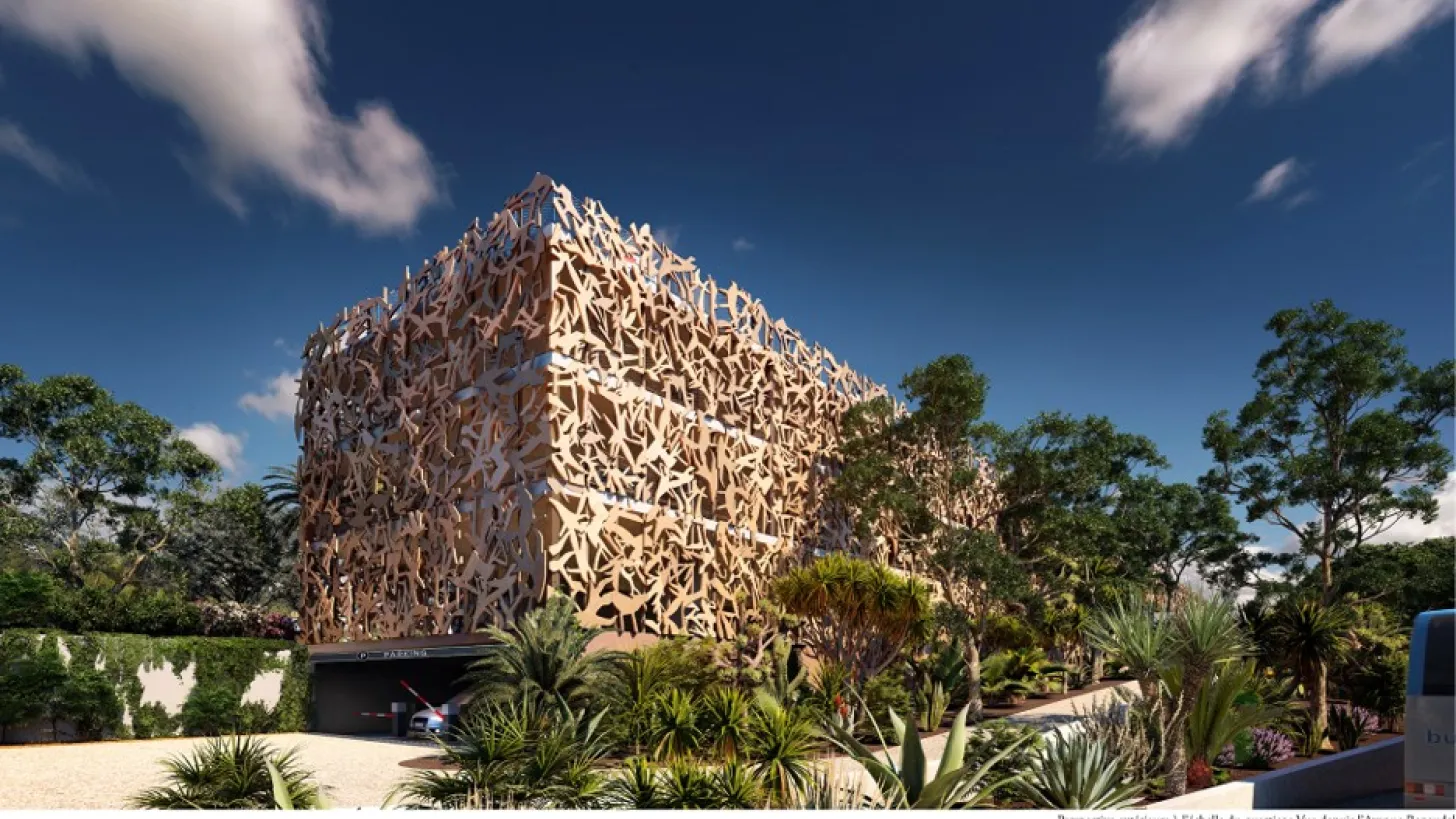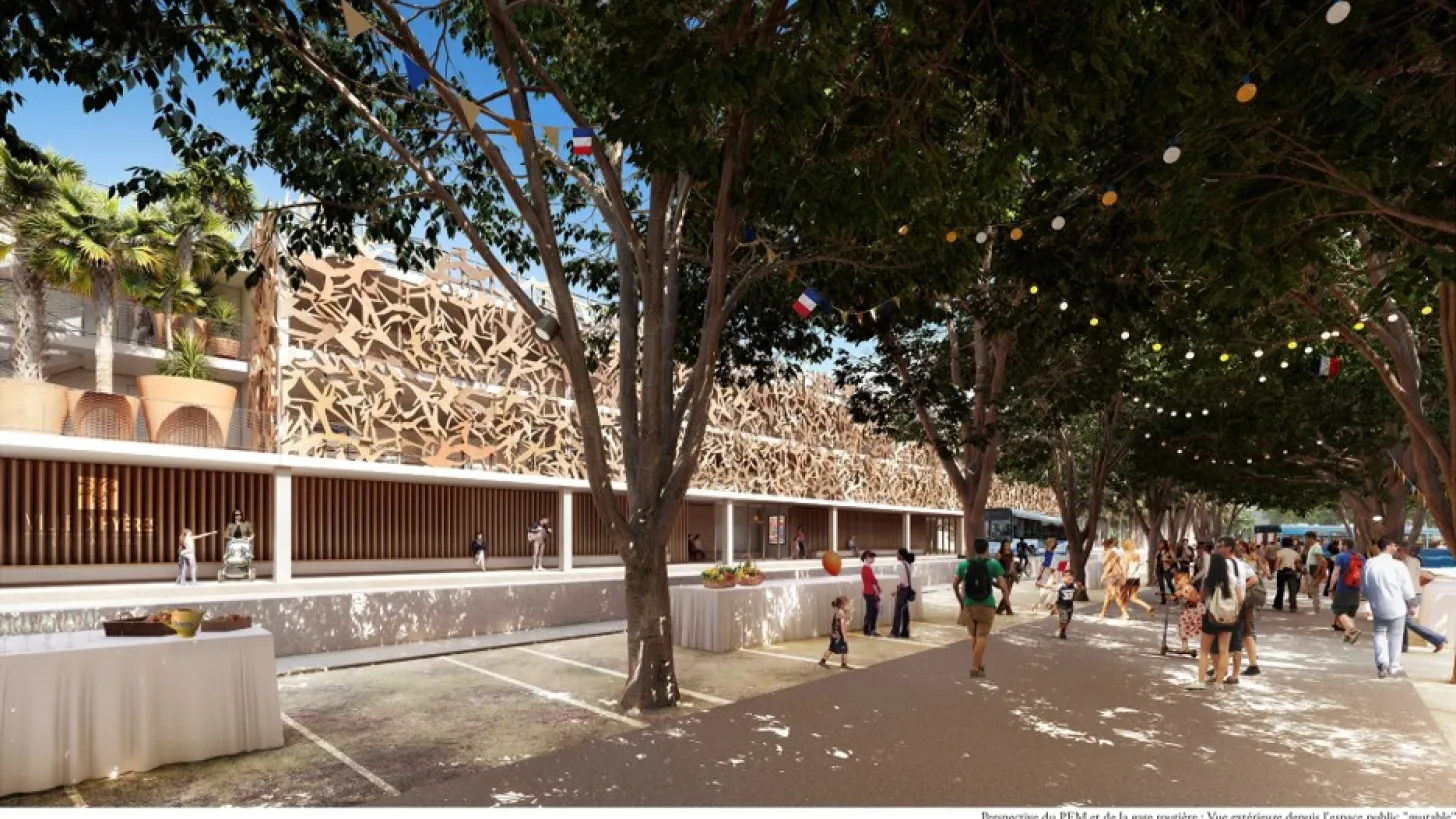 Un parking aérien mutualisé et un mail végétalisé de plus de 500 places (contre 300 actuellement) servira de relais pour les usagers des transports et de stationnement de plus longue durée. Le toit accueillera également des panneaux photovoltaïques.