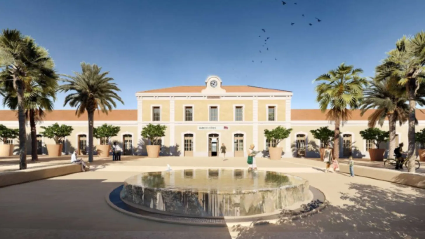 Côté gare, l’ensemble de l’espace sera réhabilité avec la création d’un parvis végétalisé, tourné vers le quartier, dédié aux modes doux (piétons et cyclistes), d’un giratoire, à la valorisation du patrimoine (le square voisin sera réhabilité) et conçu comme un espace public qualitatif (remise en avant de la fontaine…), confortable et végétalisé.