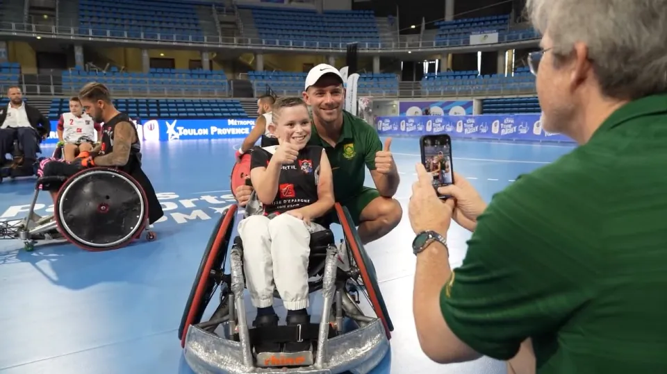 Transcription textuelle: Journée d'animations avec les Springboks au Palais des sports