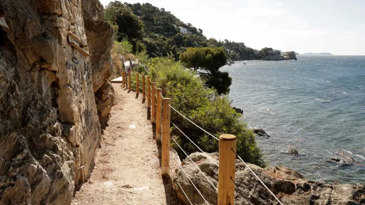 Sur 47 km de côtes, découvrez des paysages uniques : plages de sable, criques rocheuses, falaises calcaires et roches rouges. Les itinéraires, adaptés à tous les niveaux, traversent 7 communes littorales : Six-Fours-les-Plages, La Seyne-sur-Mer, Toulon, Le Pradet, Carqueiranne et Hyères, incluant les îles de Porquerolles, Port-Cros et Le Levant.
